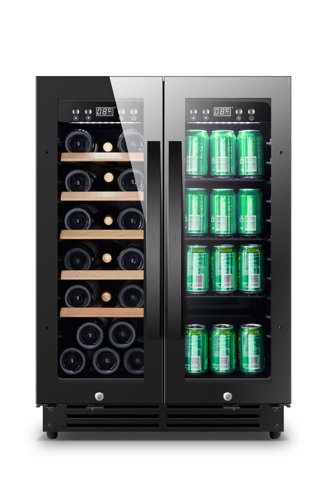 Mål: B: 59,5 x H: 87/92,5 x D: 62 cmPræsentabelt skab fra Cavin, hvor vin går hånd i hånd med øl/vand (Læs mere)